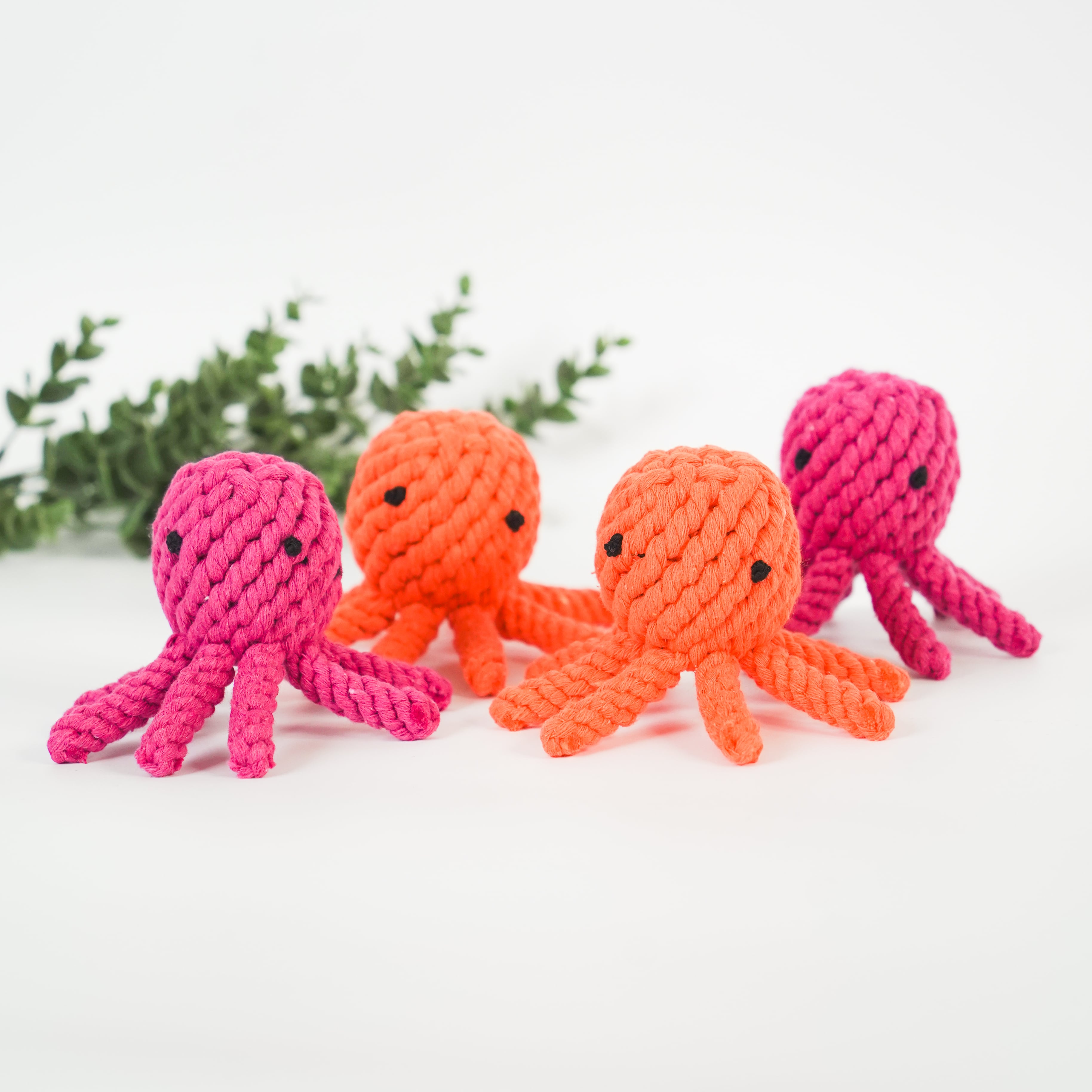 愛嬌のあるデザインのコットンロープトイのたこちゃんです♪