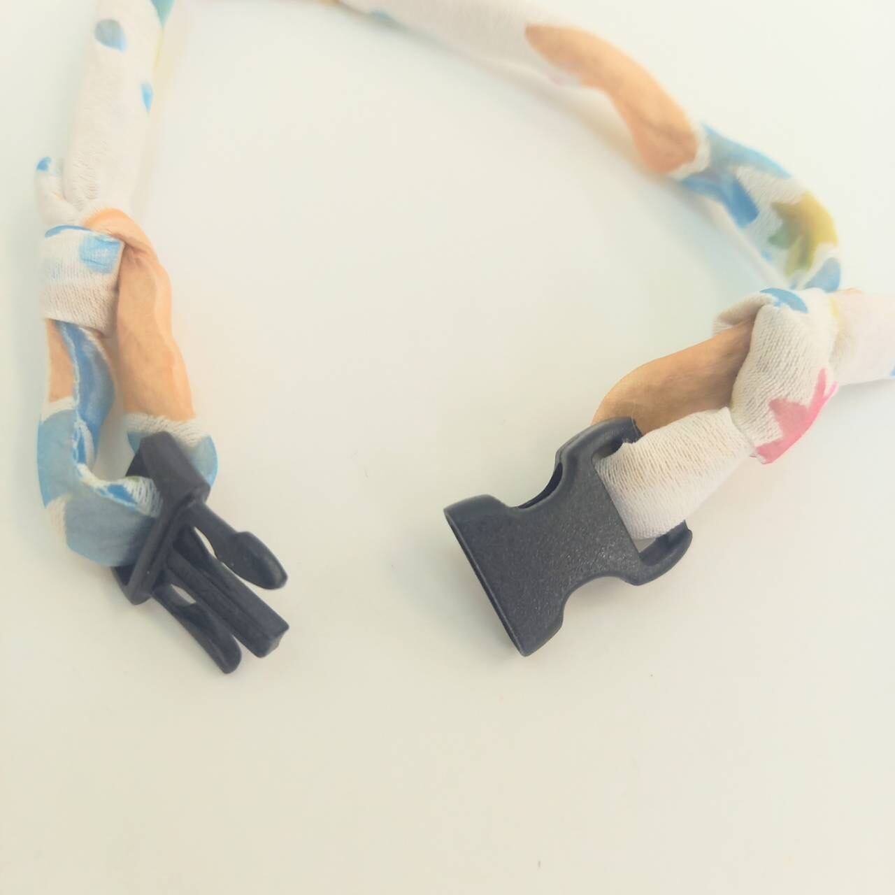 結び目をずらすことで首回りのサイズ調整が可能。